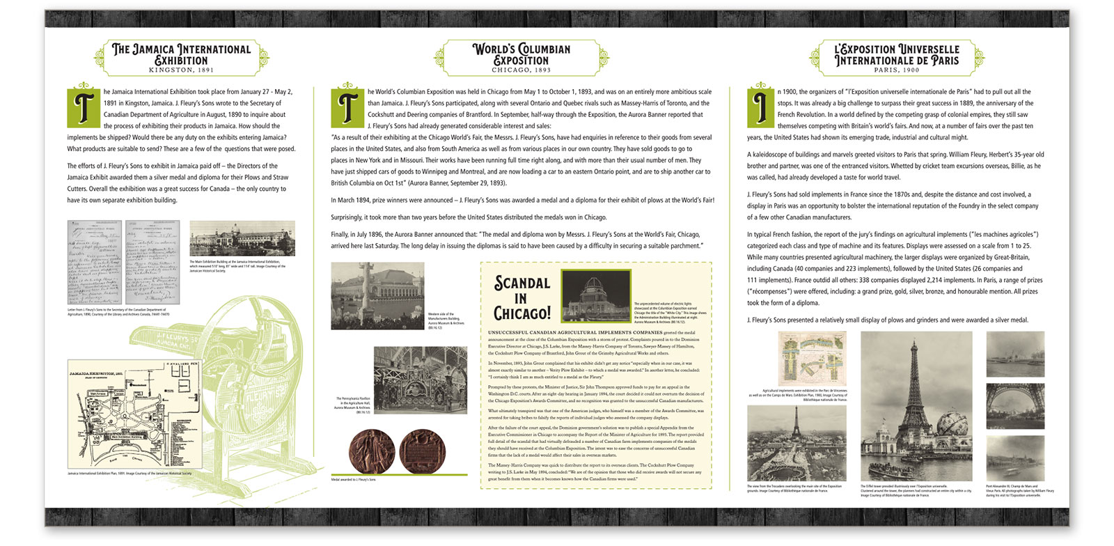Working closely with the team at the Aurora Museum & Archives, we had the pleasure of designing multiple exhibits showcasing the Town of Aurora’s vibrant and rich history. We strive to give each of the exhibits its own unique voice and we love the process of turning all of the text and imagery provided into an engaging walkthrough experience using bold visuals, thoughtful graphic elements and carefully selected typography.