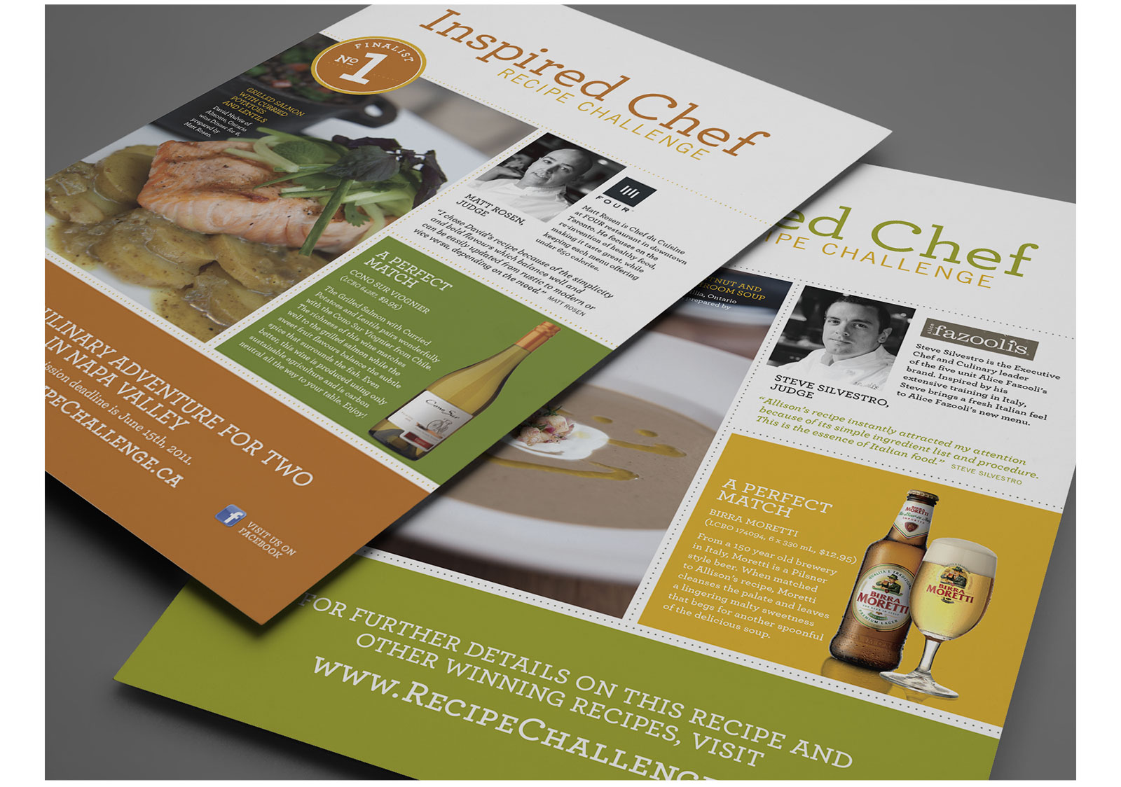 Service Inspired Restaurants’ Inspired Chef Recipe Challenge – Two ads from a series featured in Food & Drink Magazine